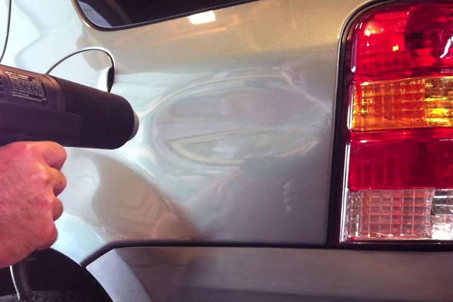 1- Use a hair dryer to heat the dented area.