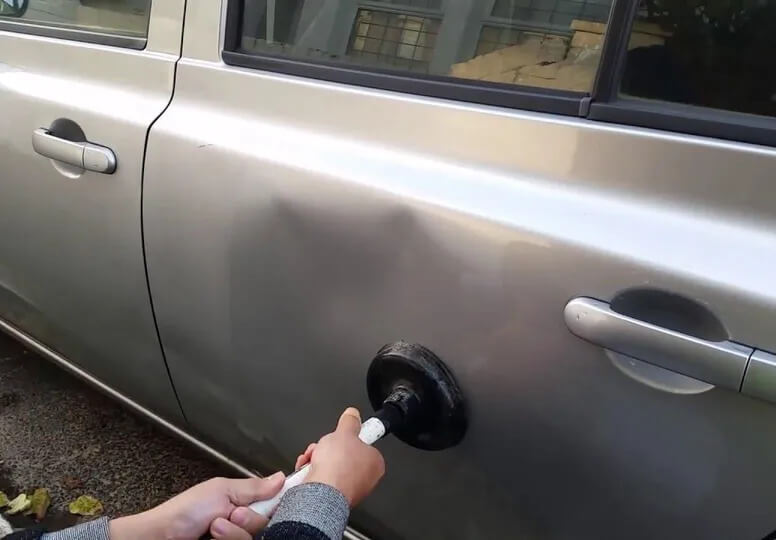 A common DIY method involves using a plunger or a suction cup to remove dents. This method works by creating a vacuum that pulls the dent out of the car door. To use a suction cup, you must first clean the area around the dent, then place the cup over the dent and pull gently. This technique can be effective for small dents that have not caused paint damage. However, it’s less effective for larger dents or dents located near the edges of a panel.
